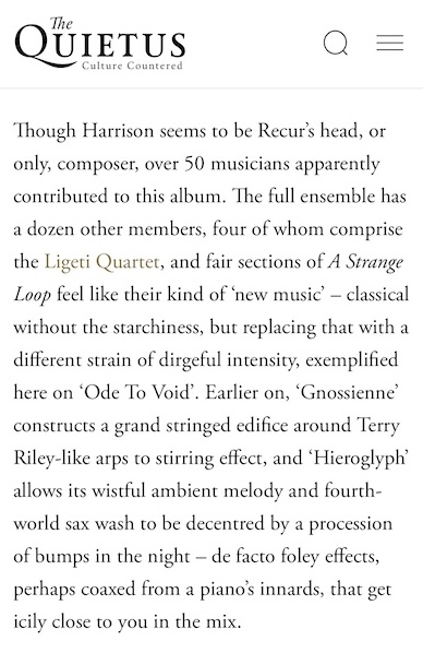 “From spacious to deeply profound, A Strange Loop sounds overwhelmingly beautiful throughout”